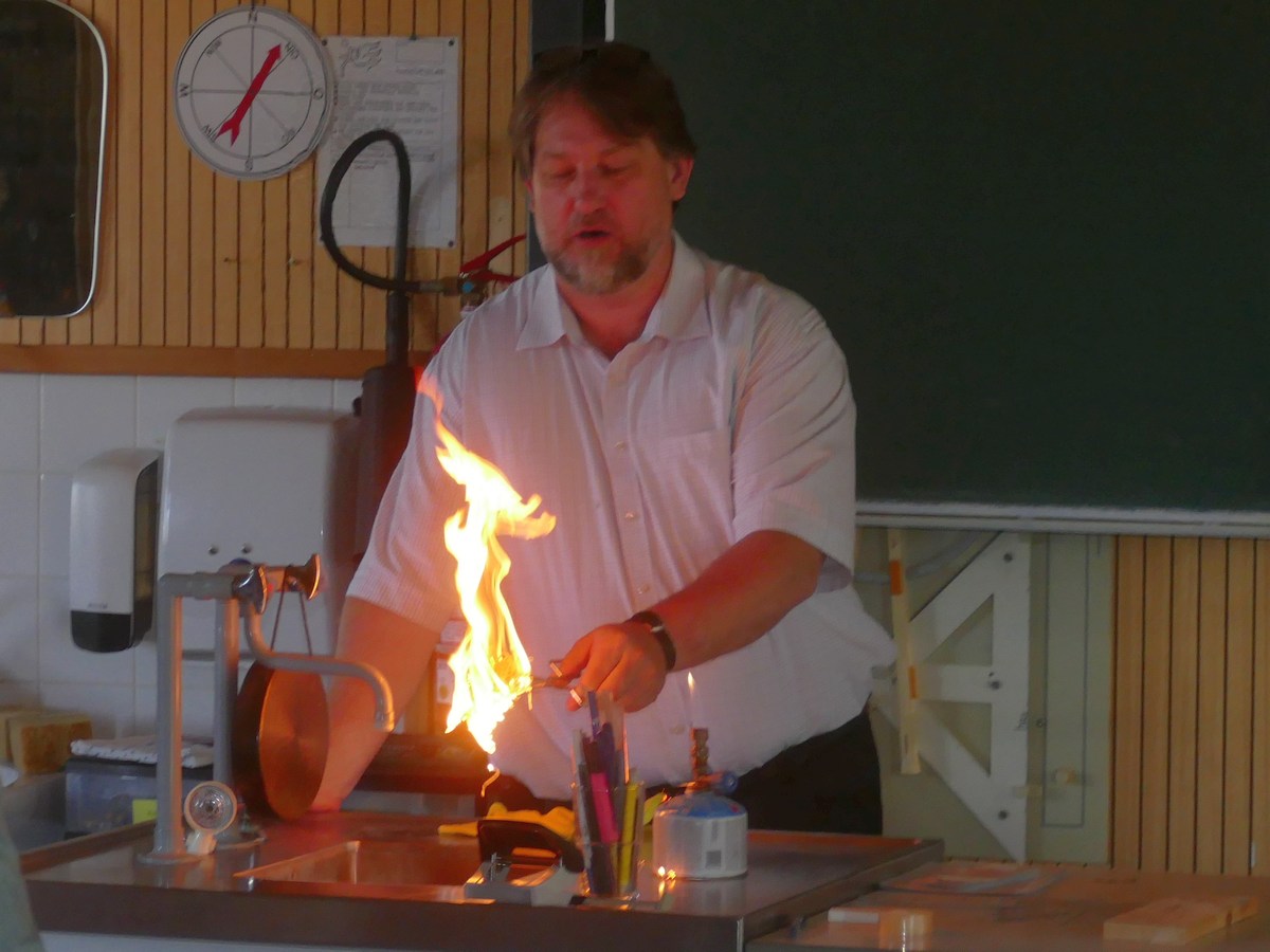 Ein besonderer Höhepunkt der heutigen Veranstaltung war die Demonstration eines Experiments durch Herrn Rupp, den Rektor der Schillerschule. Er zeigte den Anwesenden das sogenannte Feuerdreieck, um anschaulich zu erklären, wie das Geld für die Forscherstation verwendet wird. Später erläuterte Herr Rupp, dass die Schillerschule plant, mit Hilfe der Spenden die Forscherstation  der Schillerschule weiter auszubauen. Ziel ist es, in etwa zwei bis drei Jahren Materialien bereitzustellen, die von umliegenden Schulen ausgeliehen werden können. So sollen auch Schüler anderer Schulen die Möglichkeit erhalten außerhalb des regulären Lehrplans spannende Versuche durchzuführen und naturwissenschaftliche Themen praktisch zu erleben.